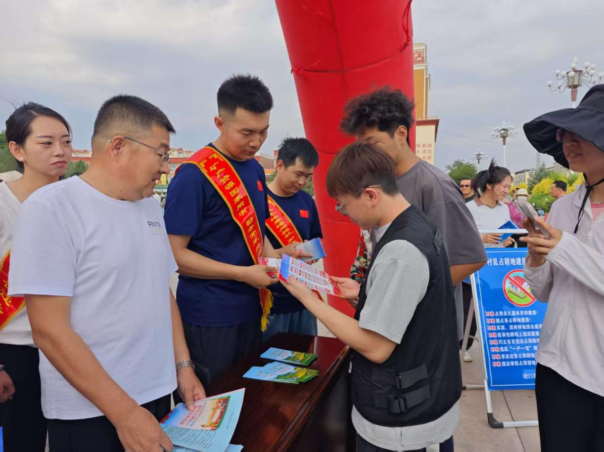 本次活动旨在深入贯彻习近平生态文明思想,通过理论学习与宣传实践相结合的方式,将“要像保护大熊猫那样保护耕地”的要求深植每名党员的心中,并通过科普宣传活动共同向公众传递保护土地资源的紧迫性与重要性。6月25日上午,双方共同学习了习近平总书记关于耕地保护的重要论述等内容,交流了各自工作实践与认识。下午,双方在磴口县富源广场,共同开展“节约集约用地 严守耕地红线”主题宣传活动,活动现场设立了咨询台与展板,并安排专业人员宣传讲解。工作人员向现场群众发放了全国土地日主题宣传手册,重点普及了不动产登记、耕地保护、矿产资源开发等领域的专业知识。同时,活动还设置了警示教育板块,通过展示违反土地管理法律法规的典型案例及相应处罚措施,为公众敲响警钟,强化法治观念。