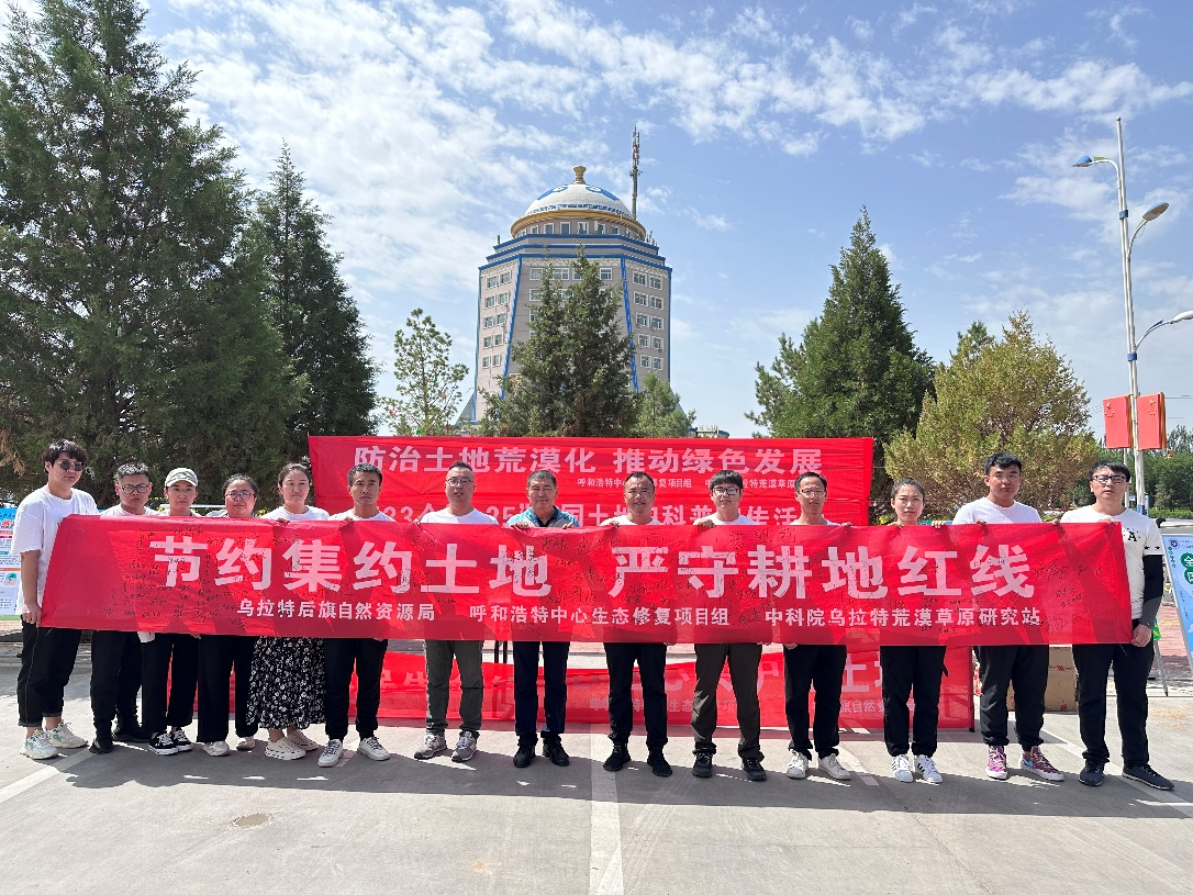 6月25日,在第33个全国土地日来临之际。中国地质调查局呼和浩特自然资源综合调查中心联合乌拉特后旗自然资源局、中科院乌拉特荒漠草原研究站,共同走进乌拉特后旗呼格吉乐广场,围绕“防治土地荒漠化,推动绿色发展”主题开展科普宣传活动。