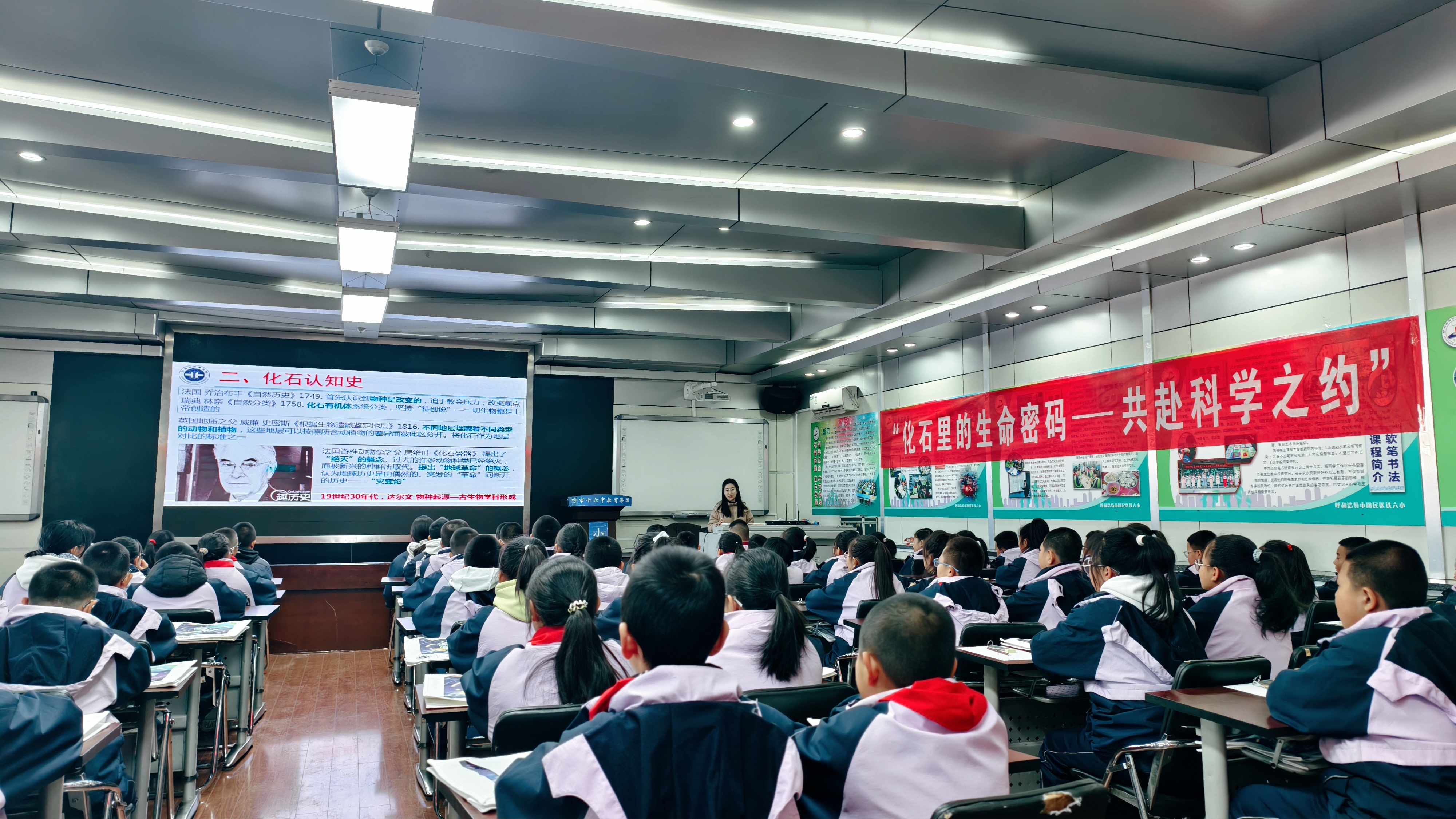 近日,中国地质调查局呼和浩特自然资源综合调查中心走进呼和浩特十六中教育集团小学部,成功举办了一场主题为“化石里的生命密码——共赴科学之约”的科普公益活动。