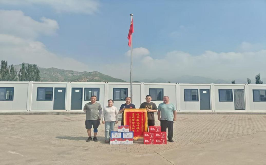 连日来,内蒙古中部地区遭遇了近66年来最强降水量,多地洪峰过境,洪灾险情告急,地处包头市九原区阿嘎如太苏木大坝沟的哈达门沟野外综合保障工作站联合呼和浩特中心内蒙古包头市乌拉山中东段金矿重点调查评价项目组、内蒙古哈达门沟及外围金多金属资源调查评价项目组,积极响应当地政府号召,短时间内立刻形成联防联控机制,配合嘎查完成新建成的旅游专线道路抢修,清淤清沙治理等工作,帮助当地居民迅速恢复生产生活秩序,得到了驻地政府和群众的极大认可。在八一建军节来临之际,阿嘎如太嘎查党群服务中心及嘎查群众自发组织慰问团到基地慰问,并送上锦旗,友好合影留念。
